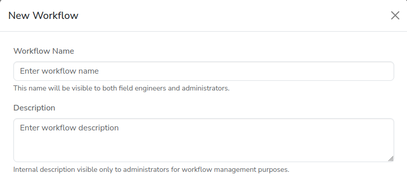 This field helps you and other admins understand the workflow's purpose, scope, or special considerations without cluttering what field engineers see.